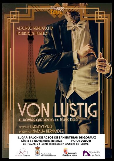 Más información: https://losabsurdosteatro.com/espectaculosabsurdos/von-lustig-el-hombre-que-vendio-la-torre-eiffel/