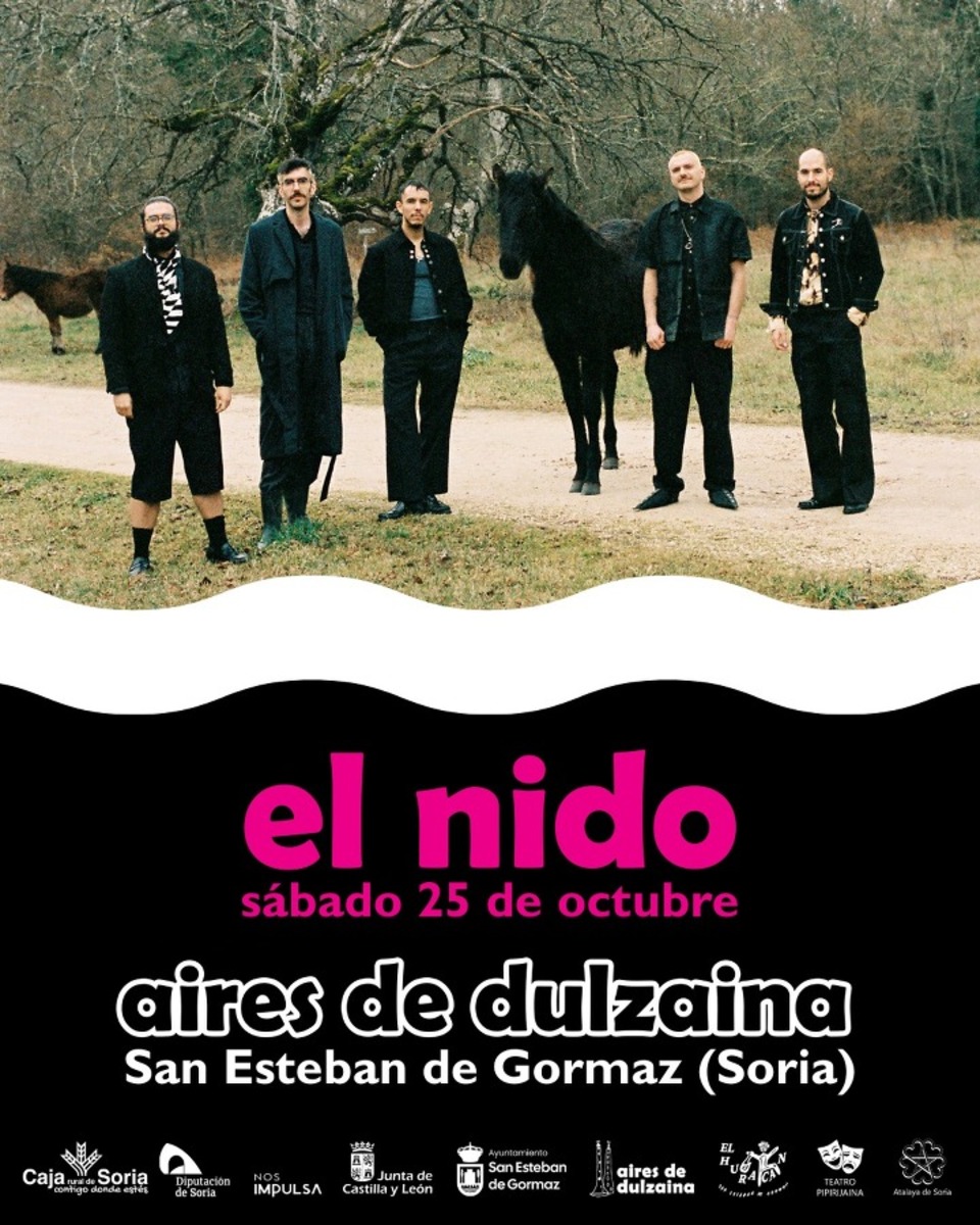 Para cerrar un sábado de Aires qué mejor que el directo de El Nido. El quinteto burgalés lleva la música de raíz a un lenguaje contemporáneo: jotas, ajechaos, charros y ruedas que conviven con percusión casera y una puesta en escena poderosa. En 2022 lanzaros su primer LP Refugios al cielo abierto y el disco contó con colaboraciones de artistas como David Ruiz (La M.O.D.A.), Ari Rubio (TéCanela) y Orégano. En sus últimos trabajos también contaron con colaboraciones como Rozalen o Rodrigo Cuevas. Han pisado mas de 130 escenarios y festivales como WOMAD o Sonorama, con elogios de Cadena SER, MondoSonoro o Jenesaipop.