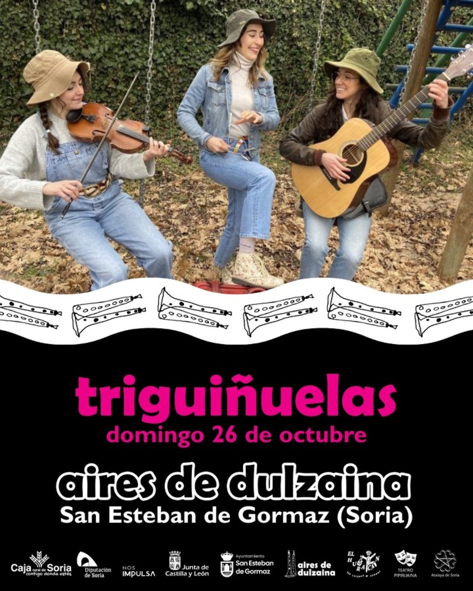 Triguiñuelas (Segovia): trío de folk castellano para peques y familias; violín, guitarras, voces y percusión, con juegos y participación. Concierto dinámico y pedagógico que acerca la tradición a los más pequeños.